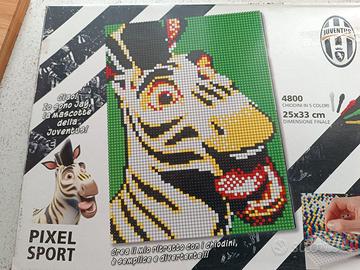 Quercetti Pixel Sport 4 tavolette Jay Zebra Juventus: Con Pixel Sport riprodurre la simpatica mascotte della Juventus, con i famosi chiodini Quercetti, è alla portata di tutti, grandi e piccini; inserisci i chiodini e il gioco è fatto! Una volta finite tutte e 4 le tavolette, potrai appendere Jay alla parete di casa come fosse un quadro e stupire tutti con la sua magica esplosione di colori. Ideale dai 5 ai 99 anni. 4800 chiodini ø4mm in 5 colori 4 tavolette traforate 4 schede e istruzioni per realizzare Jay 1 griglia da 4 tavolette. Prezzo di vendita: 23,90€"