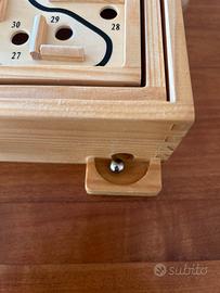 Gioco in vero legno “salta la buca “adatto per bambini dai 3 anni e adulti. 28x23x7. Divertente gioco di equilibrismo con il quale la pallina metallica deve compiere tutto il percorso per arrivare alla buca finale.