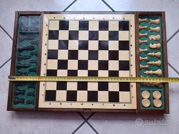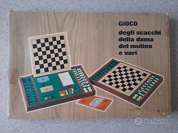 Vendo scatola gioco per scacchi, dama, mulino e vari. Misura della tavola 51cm. x 32cm. Pedine in plastica. Usato poco e in buone condizioni. Prezzo 15 euro, costi di spedizione esclusi.