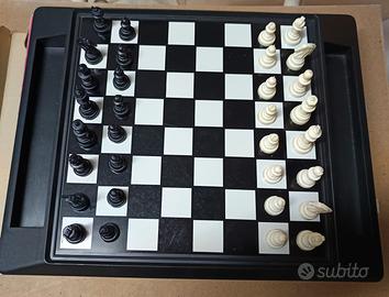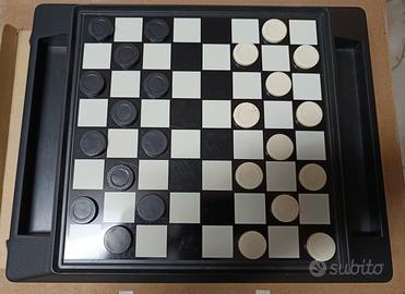 Gioco scacchi e dama scacchiera magnetica in plastica, pedine in plastica. Completa di tutte le pedine e di scatolo originale