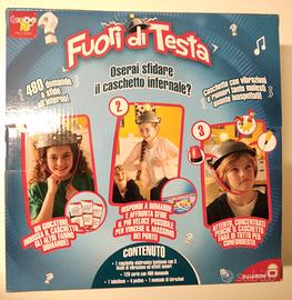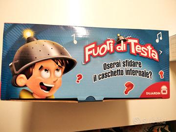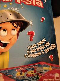 Include: 1 elmetto con suoni, luci e vibrazioni, 120 carte con 480 domande e 1 tabellone + pedine