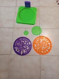 Include ruote, anelli decorativi, gli ingranaggi progettati con precisione funzionano con la maggior parte delle penne, pennarelli e matite standard. La particolarità di questo kit è caratterizzata dal supporto per i fogli di carta, basterà posizionare il foglio e le ruote dentate. +8Anni