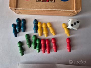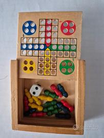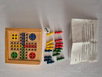 gioco in legno LUDO Tascabile (scatola 7,5x7,5 cm) 16 pedoni + 1 dado completo di istruzioni adatto dai 5 anni