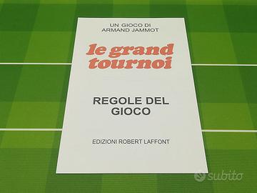 Gioco da tavolo del rugby Le Grand Tournoi. Bellissimo e raro gioco pubblicato dalla Edtions Robert Laffont, originale d'epoca fine anni '60. Età: +10. 2 giocatori. Gioco usato ma in perfette condizioni e completo di ogni sua componente: 1 tabellone, 7 carte delle squadre nazionali di rugby (Scozia, Inghilterra, Galles, Irlanda, Francia, Sudafrica e Nuova Zelanda), 48 carte "fase di gioco", 60 carte "posizione", 22 carte "arbitro", 2 porte (complete di base e piloni/meta), 1 simulatore di gioco, 1 distributore, 2 palloni rugby, 2 cartoncini pieghevoli (cache) porta-carte, 5 fishes bianche, 9 fisches rosse. Include libretto delle istruzioni in italiano e in francese. Confezione originale inclusa ed in ottime condizioni.