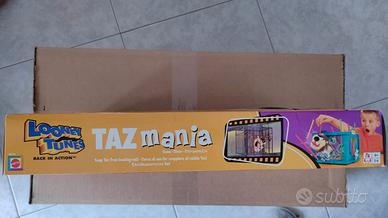 Gioco Tazmania della Looney Tunes, un divertente gioco da tavolo. - Personaggio di Taz incluso. - Gabbia blu con bastoncini colorati. - Dadi inclusi.