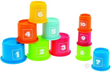 10 bicchierini di diverse dimensioni, da sovrapporre ordinandoli dal più grande al più piccolo, per sviluppare la capacità di associazione logica