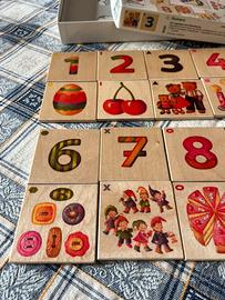 Gioco tipo memory con carte in legno