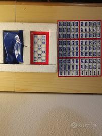 Gioco in scatola tombola, comprende tabellone, 40 tabelle, 90 pedine in legno