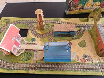 Meraviglioso gioco libretto con trenino carica a molla!! Completo di tutti i suoi accessori, condizioni ottime!!