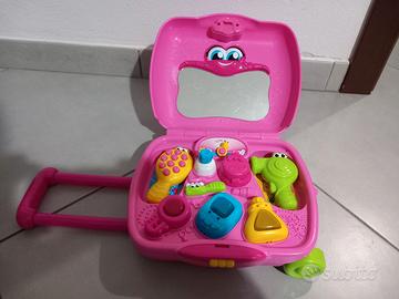 Gioco trolley per bambini con musiche e rumori riferiti agli oggetti che si trovano all'interno. Marchio Clementoni, usato ma in buone condizioni. 12mesi +, pile non incluse.