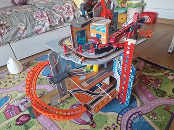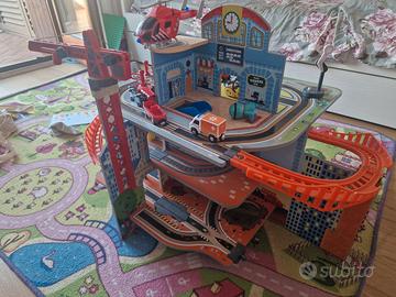 Garage per bambini. Usato: un piolo dello scivolo spezzato come da foto. Gru e ascensore funzionante. Sirena funzionante