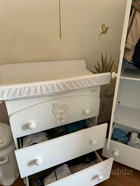 Tutti i pezzi sono in ottime condizioni, a parte il materassino sul fasciatoio che ha un buco riparabile, usati con cura e pronti all’uso.