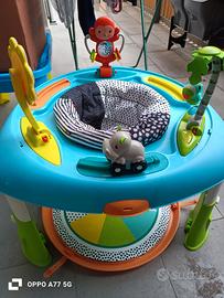 tavolino con seduta girevole può essere usato anche come tavolino oppure tenere il bambino seduto e fargli stimolare il movimento dei piedi dato che resta fermo