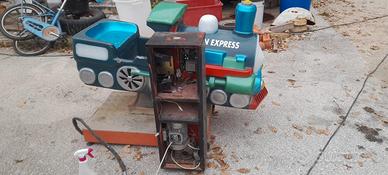 Vendo treno dondolante , giostra , ho attaccato provvisoriamente la corrente direttamente al motore e funziona , posso inviare video . Buone condizioni generali, mancano sportelli di chiusura gettoniera e motore. INFO 379 1906303