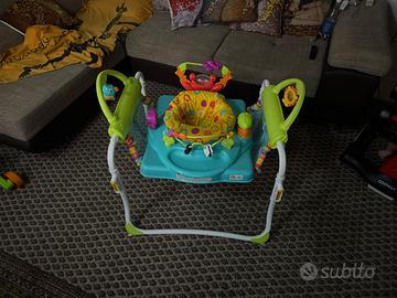 Giostrina con molle e gambe allungabili per muovere i primi passi, 3 livelli di altezza e seduta che ruota di 360 gradi con tanti giochi colorati e divertenti con luci e suoni.