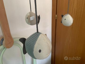 Giostrina marca BAMBOOM realizzata in legno di faggio naturale, stabile e sicura per adattarsi a ogni tipo di culla. Usata pochisimo, praticamente nuova e senza difetti. Pesciolini danzanti in morbida maglia di bambù organico per stimolare il tatto dei bambini. Emette melodia dal carillon bianco. Sui siti costa il doppio. Ottimo affare in abbinamento, eventualmente, al lettino Foppapedretti (altro annuncio).