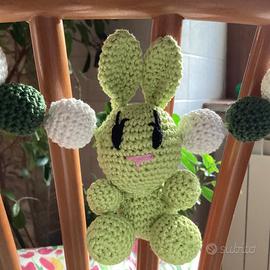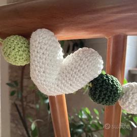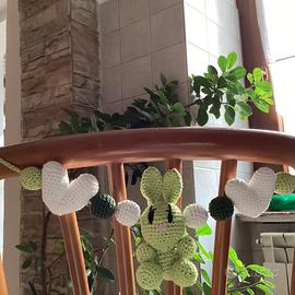 Giostrina per carrozzina, realizzato in cotone a unicinetto. Disponibile in azzurro e verde .