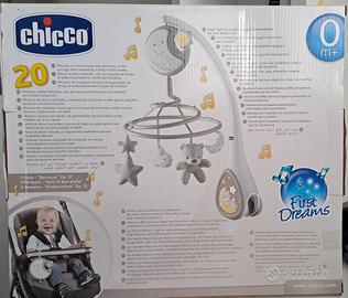 Giostrina compatibile con la maggior parte dei lettini, diffonde musica classica e rumori bianchi. Dotata di luce soffusa, il corpo musicale può essere smontato ed applicato a passeggini o lettini.