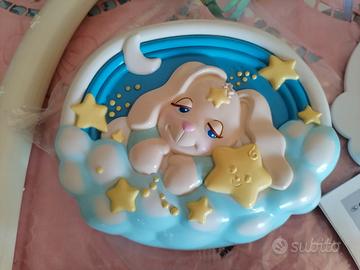 Giostrina per culla fisher price anno 2003 in perfette condizioni, si può scegliere tra 5 diversi tipi di musiche, riflette stelle e luci sul soffitto, crea una dolce atmosfera rilassante per il bimbo, c'è inclusa una bustina di pelouche vari da appendere alla giostrina ed altri per giocare, gli originali sono andati persi nel tempo