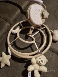 Chicco Next2Dreams Giostrina Culla per Neonati, con musica classica e luce soffusa. Ideata da Chicco per essere il partner ideale della culla Chicco Next2Me, ma installabile rapidamente e in sicurezza sulla maggior parte dei lettini in legno, la Giostrina Next2Dreams blu è un moderno carillon elettronico che diffonde musica e suoni capaci di rilassare rapidamente il tuo bambino. Il diffusore permette di ascoltare fino a 20 minuti di musica classica realizzata da noti compositori come Chopin, Schumann, Offenbach, assicurando dolci sogni al tuo bimbo. In alternativa è possibile attivare una serie di suoni bianchi, rumori percepiti dal piccolo nella pancia della mamma che lo calmeranno istantaneamente e che uniti al movimento dei 4 simpatici pendenti in tessuto anallergico lo accompagneranno gradualmente nel mondo dei sogni. La Giostrina Next2Dreams azzurra è dotata di una luce notturna soffusa e di un pannello elettrico rimovibile con un pratico sistema di aggancio per montarlo facilmente al lettino o persino al passeggino.