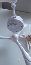 Giostrina marca Chicco con ninna nanna e 3 peluche (coniglio, orsetto e stellina). Semplicissima da attaccare al lettino.