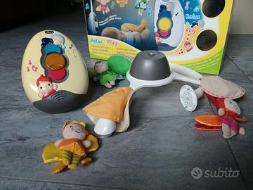 Vendesi giostrina per lettino. Marca Chicco, composta da 3 piccoli elfi che girano, dotata di musica e luci, più palestrina, sempre Chicco, con vari elementi di animaletti che suonano, girano e intrattengono il bimbo nei suoi primi giochi. Richiesta 20euro blocco di tutti e due i pezzi . Zona Torino - Carrefour Monte Cucco.