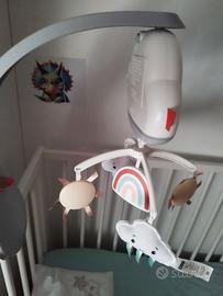 La Giostrina Dolce Arcobaleno per culla fianco letto Fisher-Price è dotata di nuvolette e soli appesi e di una playlist da 20 minuti per accompagnare il tuo bebè nel mondo dei sogni. Questa giostrina è dotata di un motore silenzioso e di un pratico sistema con sensore sonoro per riavviarla automaticamente quando rileva i suoni del bambino. La graziosa giostrina si trasforma in un'unità rilassante da appoggio con luce notturna per seguire la routine della nanna del tuo bambino durante la crescita