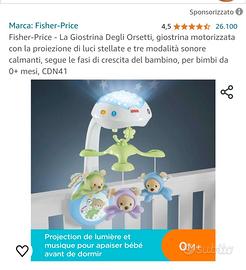 2)Giostrina motorizzata per lettino/culla(pile NON INCLUSE)