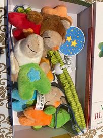 Perfettamente funzionante la parte relativa al carillon e pupazzini. L'asta da attaccare al lettino ha un perno in legno rotto ma tiene comunque bloccato in posizione.
