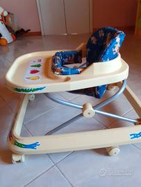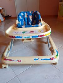 Girello Brevi adatto ai primi passi, colore giallo-azzurro, dotato di 4 ruote piroettanti ed è regolabile in altezza. Condizioni nuovo, 20 euro.
