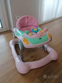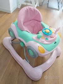 Girello CAM rosa stile macchina, in ottime condizioni, regolabile in 2 altezze per seguire la crescita del bambino.