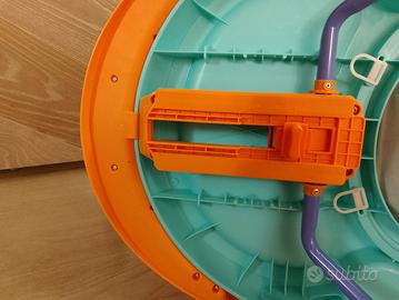 Questo è un girello per bambini Chicco Walky Talky, un dispositivo progettato per aiutare i più piccoli nei loro primi passi. Include attività elettroniche con luci e suoni per stimolare lo sviluppo. La seduta si regola su tre diversi livelli per adattarsi alla crescita del bambino. può essere ripiegato facilmente per occupare meno spazio quando non in uso.