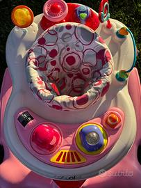 Dotato di 4 ruote in silicone e 8 dispositivi di bloccaggio in silicone tipo “bordo scala”, che impediscono l’avanzamento del girello se una o più ruote perdono il contatto con il suolo. Il girello è dotato di un centro attività colorato e attraente per il bambino. Seduta girevole a 360°. Coccolle Arlo è dotato di un poggiapiedi removibile. Può essere regolato su tre livelli di altezza per adattarsi alle fasi di crescita del bambino. Il rivestimento del sedile è removibile e può essere lavato a temperature fino a 30°C. Trasformabile in dondolo. Il girello è consigliato per bambini di età superiore ai 6 mesi. Peso massimo del bambino: 12 kg. Peso del girello: 5 kg.