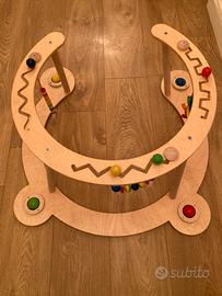4 biglie alla base consentono il movimento nello spazio. Giochi in legno che possono scorrere nelle scanalature. Viti per il montaggio incluse.