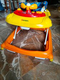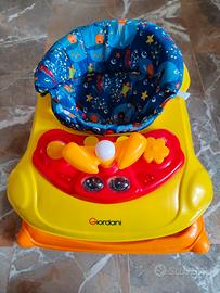 Girello Giordani cookies, con diverse altezze per seguire lo sviluppo del tuo bambino ed accompagnarlo in sicurezza fino ai primi passi. Dotato di giochino luminoso e sonoro nella parte anteriore.