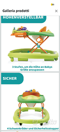 Spettacolare si può regolare come si vede in foto , con luci e musiche. Il girello è nel suo scatolo originale.