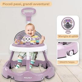 Completamente regolabile: Il girello per bambini 6-18 mesi Twinky è completamente pieghevole, perfetto per risparmiare spazio. Altezza del sedile regolabile per seguire la crescita del tuo bambino.