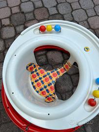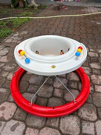 Girello per bimbi per la dase dei primi passi, con giochini e lo spazio per pasticciare e giocare con le mani