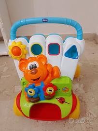 Questo è un gioco Chicco Happy Hippy Eco+, un girello primi passi 2-in-1 che include anche un centro attività. Funzione: Aiuta il bambino a ritrovare l'equilibrio e a muovere i primi passi in sicurezza. Attività: Include 5 attività manuali, Dotato di 4 larghe ruote per una stabilità ottimale durante l'uso