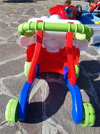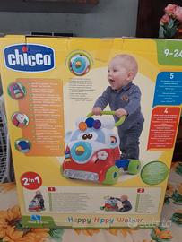 girello quadriciclo chicco primi passi baby bambino bambina happy hippy walker con cilindri, fiorellino, orologio, specchietto, ecc aiuta tantissimo lo sviluppo delle capacita' psicomotorie del bambino migliorando la coordinazione dei movimenti muovendo i primi passi in sicurezza. Happy Hippy Walker di Chicco è il Primi Passi che accompagna il bambino a muovere i suoi primi passi in scurezza e allegria. Happy Hippy 2 in 1 offre due modalità di gioco: come primi passi per acquisire l’equilibrio e sviluppare le capacità psicomotorie grazie alle ruote ed al maniglione di sicurezza e come centro attività per sviluppare la sensibilità manuale, con tante divertenti sorprese. Adatto dai 9 mesi ai 24 mesi. valore da nuovo 32 euro. poco utilizzato con scatola originale.