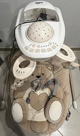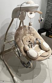 SALVE, VENDO PER INUTILIZZO "IMPECCABILE" SDRAIETTA ED ALTALENA MARCA CAM MODELLO GIRONANNA EVO Art.S347 VARIANTE COLORE BEIGE-PANNA. IL GIRONANNA IN OGGETTO PRESENTA LE SEGUENTI CARATTERISTICHE TECNICHE: - MORBIDO RIVESTIMENTO IN CINIGLIA - 4 VELOCITÀ DI OSCILLAZIONE - LUCI AD INTERMITTENZA, PROIETTORE FASCIA DI LUCE LUMINOSA 5 MELODIE, 3 SUONI NATURALI - VOLUME REGOLABILE - INGRESSO JACK DA 3.5MM PER SMARTPHONE E/O LETTORE MUSICALE ESTERNO - TIMER CON AUTOSPEGNIMENTO (10-20-30 MINUTI) - GIOSTRINA GIREVOLE MOTORIZZATA CON TENERI PELUCHES REMOVIBILI E LAVABILI ALL'OCCORRENZA - SEDILE ASPORTABILE DALL' ALTALENA PER FUNZIONE SDRAIETTA UTILIZZABILE DA 0 A 9 KG (VEDI FOTO ESEMPLIFICATIVA) - SCHIENALE REGOLABILE IN 3 POSIZIONI - BASE CON FUNZIONE DONDOLO E PIEDINI ANTISCIVOLO - MORBIDO E RICCO RIDUTTORE - FUNZIONAMENTO SIA A BATTERIA (4 PILE MODELLO D — 1,5 VOLTS) CHE ATTRAVERSO ALIMENTAZIONE A CORRENTE (PRESA ELETTRICA 220/230 VOLT) TRAMITE APPOSITO ADATTATORE INCLUSO NELLA CONFEZIONE (VEDI FOTO) - RIVESTIMENTO LAVABILE A 30°C - CHIUSURA COMPATTA PER FACILITARE IL TRASPORTO IL GIRONANNA VIENE VENDUTO NEL SUO IMBALLO / CONFEZIONE ORIGINALE COMPRENDENTE TUTTI GLI ACCESSORI INCLUSI. DISPONIBILITA' A QUALSIASI PROVA PRIMA DELL'ACQUISTO. DISPONIBILITA’ ALLA SPEDIZIONE TRAMITE CORRIERE. VENDO A €75,00 POCO TRATTABILI.