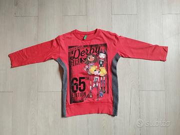 - maglia rifinita tipo felpa con stampa ed applicazioni glitter. Bande laterali in tessuto con lamè argento, marca Benetton taglia 6-7 anni. Praticamente nuova. €3