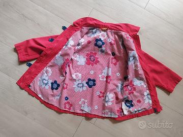 - giubbino giacca a vento con cappuccio staccabile. Cerniera e alamari, fodera a fiori in cotone. Ha segno del ferro da stiro su un braccio (vedi foto). Marca Mayoral taglia 7 anni, €4
