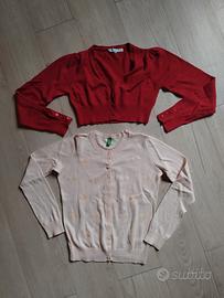 - 1 maglioncino coprispalle crop, rosso. Maniche arricciate su spalle, cannolet alto in vita. Pullover in filo di cotone sottile. Abbottonato davanti, applicazioni di paillettes tono su tono. Marca Benetton. Taglia 7-8 anni. Perfetti. €6