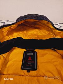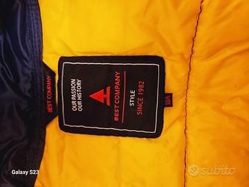 Veenfo piumino 100 grammi bambino colore blu con interno giallo. Tenuto bene, nessuno strappo o buco.