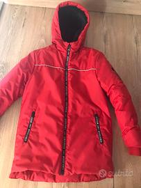 Giubbino rosso Idexe con interno felpato e cappuccio con pelliccia, taglia 9/10 anni.