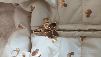 Giubbino bimbe Disney Minnie della Originals Marines di colore bianco con disegni Minnie d'orati e cappuccio divertente. Veste lungo ed è in buono stato come da foto.