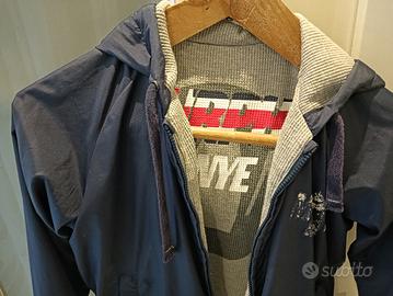 Vendo giubbino leggero bimbo, taglia 5 anni, colore blu con cappuccio, grigio all' interno, double face, marca Murphy & Nye.