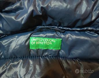 In buonissime condizioni della Benetton , giubbino imbottito blu unisex con cappuccio estraibile , leggero ma tiene molto caldo.