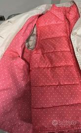 Trench bambina primaverile taglia 5 anni, veste 110 cm, colore beige con cinturino. Il trench al suo interno e’ dotato dicuno smanicato rosa a pois bianchi, quindi la giacchi è sfruttabile in 3 versioni, solo trench, solo smanicato e insieme. E’ come avere 2 capi in uno.